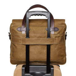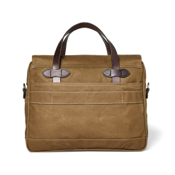 Our highest-capacity briefcase. the 24-Hour Briefcase combines the organizing ability of our Padded Computer Bag with the sleek design of our Original Briefcase. The waxed Tin Cloth material protects gear from foul weather and spray. This tightly woven canvas duck has been thoroughly saturated with wax for water resistance. The Bridle Leather handles are vegetable-tanned with tallows and wax added in the final stages. giving the leather a deep luster and lasting flexibility. The main zipper is solid brass from YKK® for a lifetime of rust-free operation. The interior is fully lined with unwaxed cotton. with a padded sleeve for laptops up to 15‚Äù. Exterior zippered pockets have organization pockets inside. Rear trolley strap slides over luggage handles. Detachable. adjustable webbing shoulder strap.