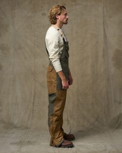 Built with our signature waxed cottons. our Double Hunting Bibs are a natural. durable barrier to rain. snow. and mud with the full-coverage comfort that only bibs can provide. They’re constructed with oil finish Shelter Cloth and reinforced with a second layer of Tin Cloth on the leg fronts. lower-backs. and seat — right where it’s needed to keep you dry. The lower-leg zippers make it easy to slip on and off over bulky boots. and they are protected by a snap-secure storm flap. Dual chest pockets keep essentials close at hand and are protected by snapped flaps. The elastic suspender straps and buttoning side gussets help you dial in custom fit for all-day comfort.