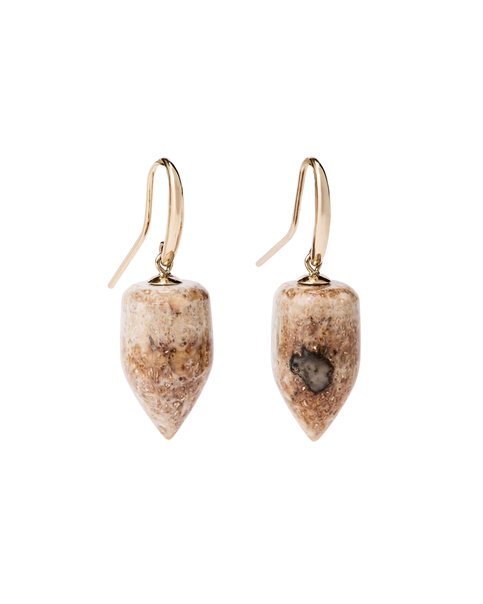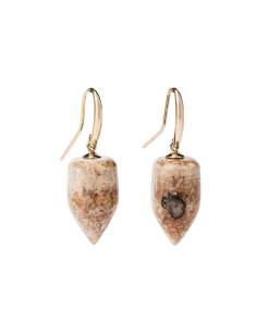 These earrings are made from a material as enduring as the landscape it comes from–fossilized walrus tusk found on Alaska’s Saint Lawrence Island. Each piece holds its own character. with natural variations in color and pattern that can’t be replicated. No two pairs are alike.