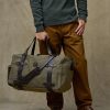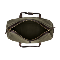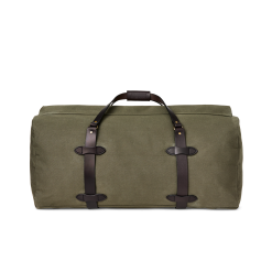 Our Rugged Twill Duffle Bags embody the philosophy that’s guided Filson since 1897. making products that are handed down rather than tossed out. Made with our signature Rugged Twill and Bridle Leather. our Large Duffle Bag is built tough enough for the most extreme conditions and sized for long excursions. The lightly waxed fabric keeps gear dry and closes with a solid brass YKK® zipper that’s protected by a snap-secured storm flap. We use Bridle Leather from Wickett & Craig for the removable shoulder strap and for the handles that wrap around the bag to securely cradle heavy loads. Interior end-cap pockets for organization.
