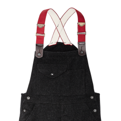 Filson wool bibs have kept outdoorsmen warm in freezing conditions for three decades. The thick 24-oz. wool is made from longest. strongest fleece fibers. The thick yarns are tightly woven into a dense twill fabric that sheds water and wind while remaining highly breathable. Our wool wicks moisture away for evaporation and insulates dry or wet. Mackinaw’s tight weave also provides outstanding durability. often being handed down to the next generation. The relaxed fit of our bibs provides unrestricted ease of motion for active use. The sides are gusseted sides with metal buttons for easy on/off. Flapped cargo pockets on the chest and legs keep essentials close at hand. Elastic suspenders. Unhemmed.