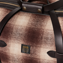 This special-edition bag is made from the Mackinaw Wool that has protected foresters. ranchers and sportsmen in the Pacific Northwest for well over a century. Its durability is unrivalled. often being handed down to the next generation. This exceptional wool is lined with strong cotton canvas for structure and added gear protection. The Bridle Leather straps and Weatherproof Leather bottom panel are vegetable-tanned by Pennsylvania’s Wickett & Craig. tanning experts since 1865. During tanning. premium cowhides are slowly steeped in bark-tannin solutions for weeks. transforming them into durable. lustrous leather that lasts a lifetime. The handles wrap around the circumference of the bag to cradle heavy loads. The interior features pockets on each end cap to keep smaller items organized.