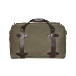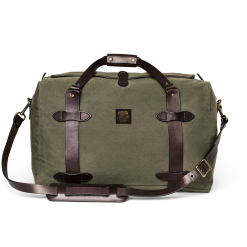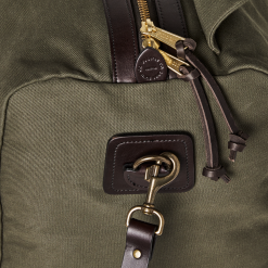 Our Rugged Twill Duffle Bags embody the philosophy that’s guided Filson since 1897. making products that are handed down rather than tossed out. Made with our signature Rugged Twill and Bridle Leather. our Medium Duffle Bag is built tough enough for the most extreme excursions and sized for long weekends and multi-day trips. The lightly waxed fabric keeps gear dry and closes with a solid brass YKK® zipper that’s protected by a snap-secured storm flap. We use Bridle Leather from Wickett & Craig for the removable shoulder strap and for the handles that wrap around the bag to securely cradle heavy loads. Interior end-cap pockets for organization.