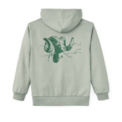 75% cotton with 25% polyester for strength. this durable fabric has a brushed interior for warmth and a smooth exterior that resists pilling. The hem and cuffs are built with a wide and sturdy rib-knit for a custom fit with outstanding stretch and recovery. The generously sized hood easily fits over caps and is drawcord-adjustable for security in the wind. Finished with a front kangaroo pocket and classic Filson logo graphics.