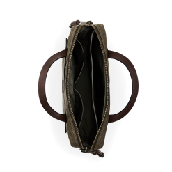Our Tin Cloth Compact Briefcase is padded to protect a laptop or tablet up to 15. The front stow pocket extends the full width of the briefcase for carrying files. and the rear pocket snaps closed to secure contents. The main compartment’s heavy-gauge metal YKK zipper is built for a lifetime of service. The fabric is our signature Tin Cloth. a tightly woven duck canvas that’s been thoroughly saturated with liquefied wax under heat and pressure for maximum water resistance. Tin Cloth’s tight weave provides outstanding resistance to abrasion and punctures without excessive weight. The Bridle Leather handles are thick and strong for lasting service.. The interior is fully lined with cotton Cover Cloth. Detachable. adjustable webbing shoulder strap.