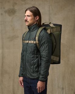 Sized for weekend excursions and built to protect gear through any weather. It’s made with 100% recycled polyester fabrics treated with thermoplastic polyurethane (TPU) to prevent water entry. The main material is 300D ripstop. and the bottom boot 600D Oxford matte for added durability.
