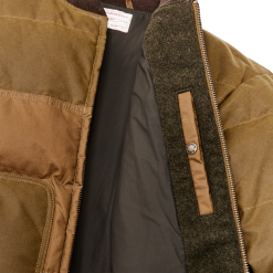 The Down Bomber Jacket pairs our signature waxed cottons with 650-fill-power down for heavy-duty warmth that weighs little. The torso is constructed from 8-oz. water-resistant oil finish Cover Cloth. with waxed 11-oz. Shelter Cloth for the shoulders and sleeves for increased durability and weather protection. The patch pockets are made from oil finish Shelter Cloth and lined with 100% wool for warmth. The classic bomber design features sturdy wool-blend ribbed cuffs and hem to keep warmth in and seal out cold wind.