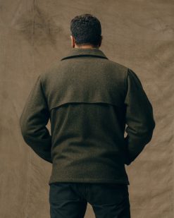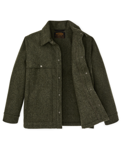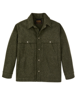 Built with Mackinaw Wool. trusted for over a century to turn back wind. snow. and rain. A cape draped over the shoulders doubles the protection across the chest and back without adding bulk through the body. The chest pockets sit beneath that cape. shielded from weather. Lower on the front. angled handwarmer pockets provide comfort and easy access. The snap-front closure is simple. fast. and glove-friendly.