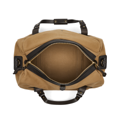 Our Rugged Twill Duffle Bags embody the philosophy that’s guided Filson since 1897. making products that are handed down rather than tossed out. Made with our signature Rugged Twill and Bridle Leather. our Medium Duffle Bag is built tough enough for the most extreme excursions and sized for long weekends and multi-day trips. The lightly waxed fabric keeps gear dry and closes with a solid brass YKK® zipper that’s protected by a snap-secured storm flap. We use Bridle Leather from Wickett & Craig for the removable shoulder strap and for the handles that wrap around the bag to securely cradle heavy loads. Interior end-cap pockets for organization.