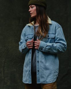 Our Denim Work Shirt can double as a thick. heavy shirt or an overshirt. It is made with premium 11-oz. denim. a classic workwear fabric for ranchers and vintage miners. This fabric has durability for hard work and decades of reliable service. The collar is lined with contrasting cotton corduroy for distinctive flair and next-to-skin comfort. Custom buttons secure the front closure. cuffs. and chest-pocket flaps.
