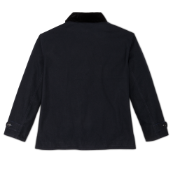 A relaxed garment for every walk of life. this jacket blends design simplicity. expert construction. and iconic materials. It is made with dry finish Tin Cloth. the unwaxed version of our signature fabric that is famous for its durability. The warm cotton-flannel lining is brushed for softness and comfort. Button-secure front closure and adjustable cuffs. Corduroy-lined collar.
