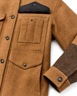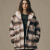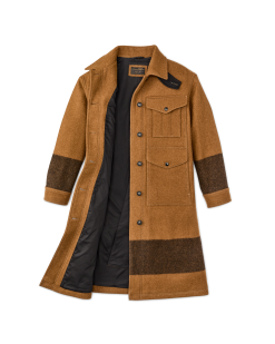 Women’s Wool Long Cruiser Coat – Whiskey / Black Stripe